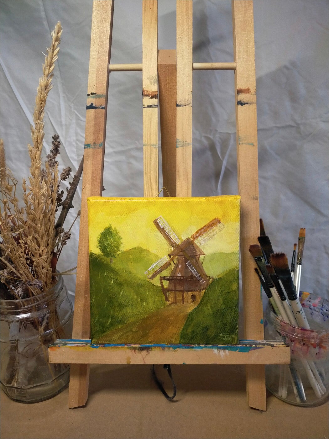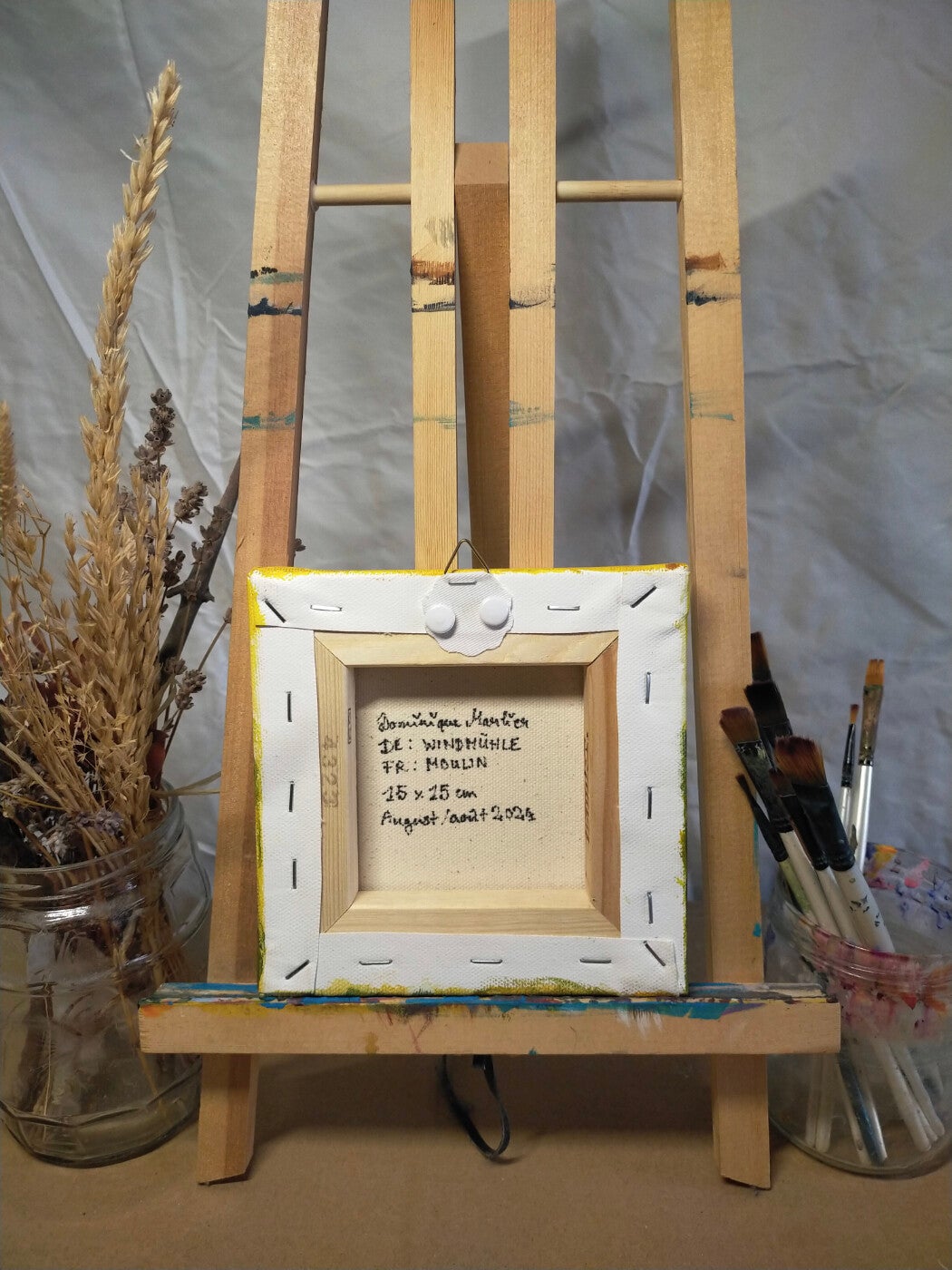 Es handelt sich um ein Acrylgemälde, welches auf einer 15x15cm realisiert wurde. Die Dicke der Leinwand liegt bei ungefähr 2cm.